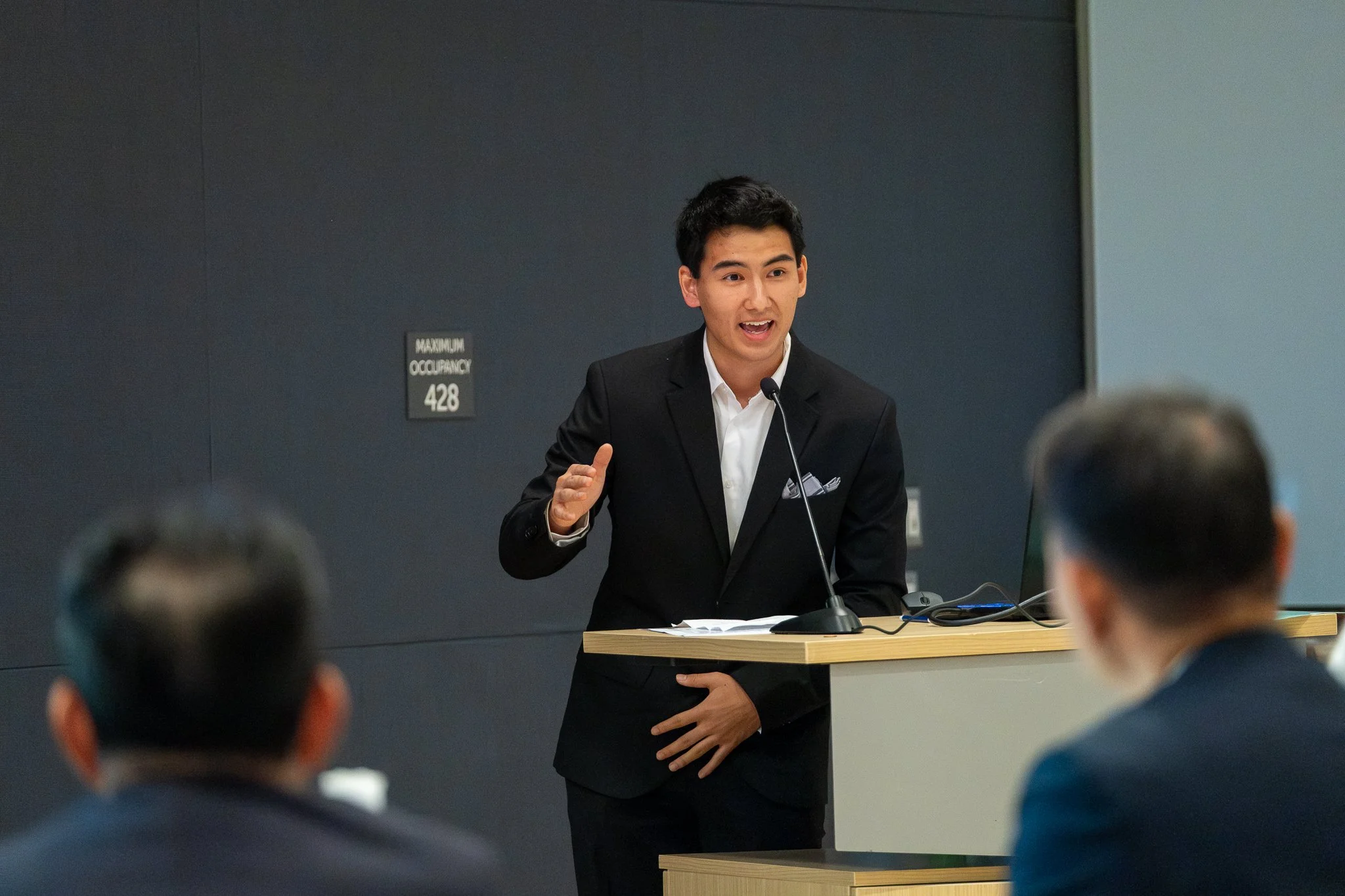 Preston Lee, Student Volunteer for the Sunnyvale Sister City Association, speaks during the host family panel at the November 21 event.